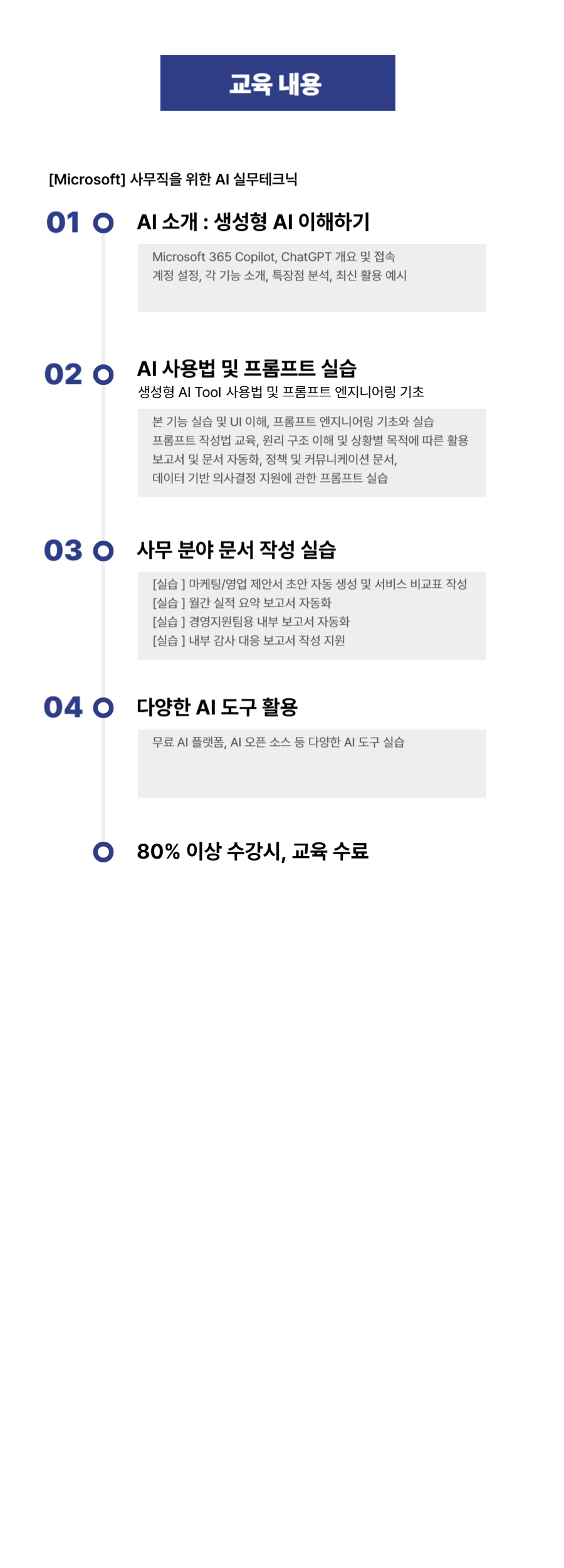- Copilot 및 생성형 AI 도구를 활용하여 업무에 필요한 문서를 신속하고 정확하게 작성하는 능력 향상
